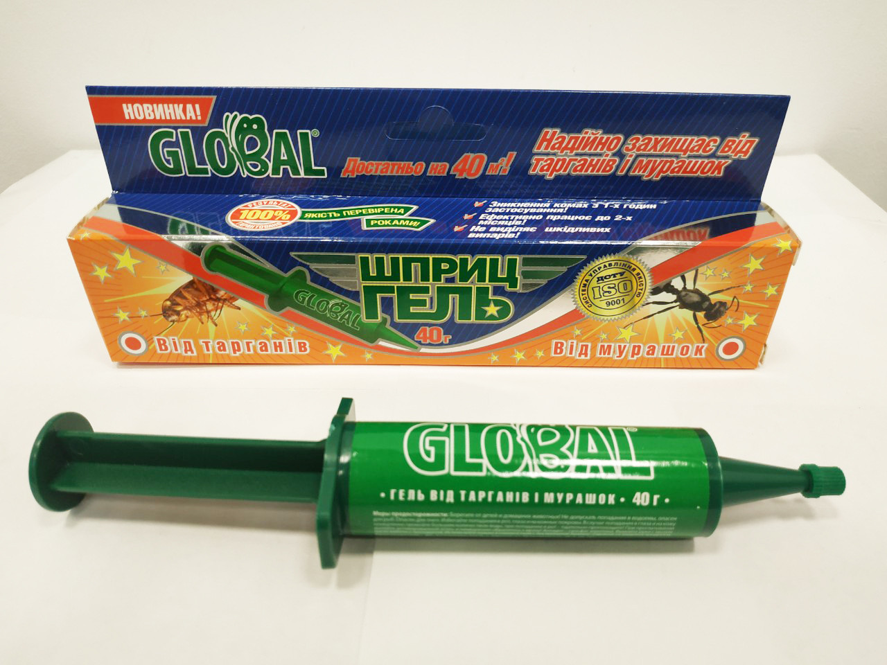 Глобол (Global) гель-шприц – надійний засіб захисту від тарганів та мурах у шприці. Використовується для боротьби з комахами в побутових приміщеннях. З'їдаючи приманку, комахи гинуть самі і смертельно заражають родичів.