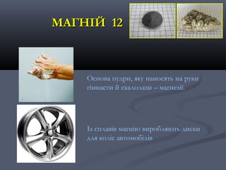 Чорні метали — залізо, манган, хром — є основними продуктами чорної металургії, а їх сплави використовують у всіх галузях машинобудування. Важкі метали — мідь, цинк, олово і свинець — застосовують в машинобудуванні, електротехніці, енергетиці.11 січ. 2022 р.